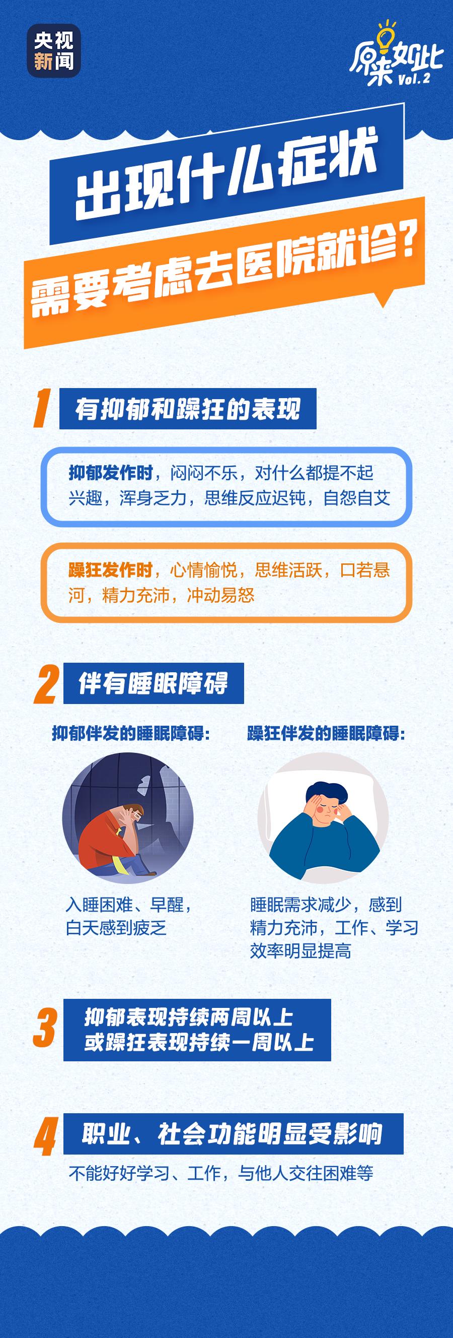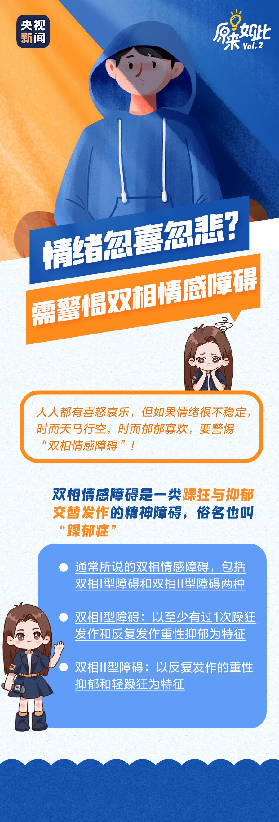 抑郁时,情绪低落;躁狂时,冲动易怒……人的情绪是不断波动的,但有些情绪如果超出了正常的波动范围,有可能预示着患上了双相情感障碍。