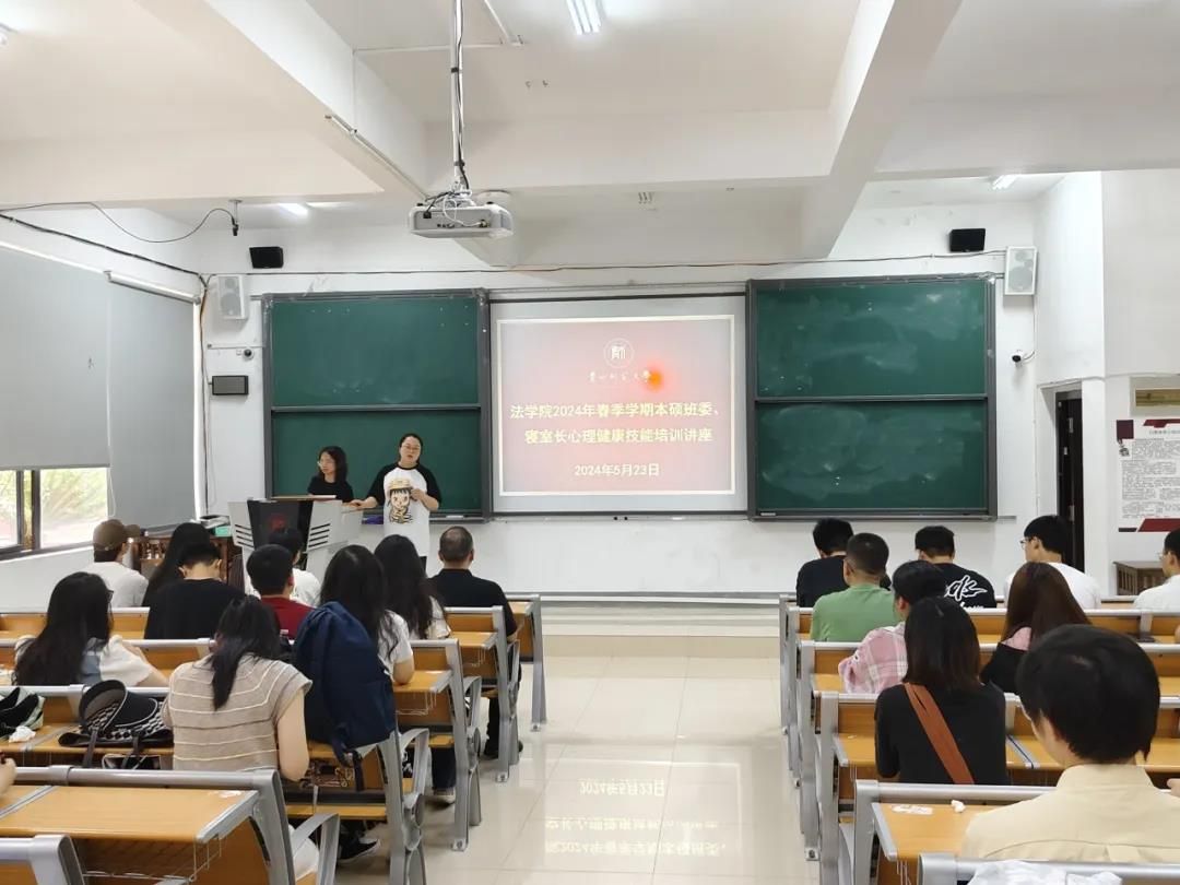 法学院为加强心理健康教育,提升学生干部心理健康技能,于5月23日在学院9102教室举办了2024年春季学期本硕班委、寝室长心理健康技能培训讲座。此次讲座由心理健康教育与咨询中心的闫春艳老师主讲,院党委副书记欧秀松,辅导员高林娇老师出席,法学院本硕全体班委、寝室长参与。