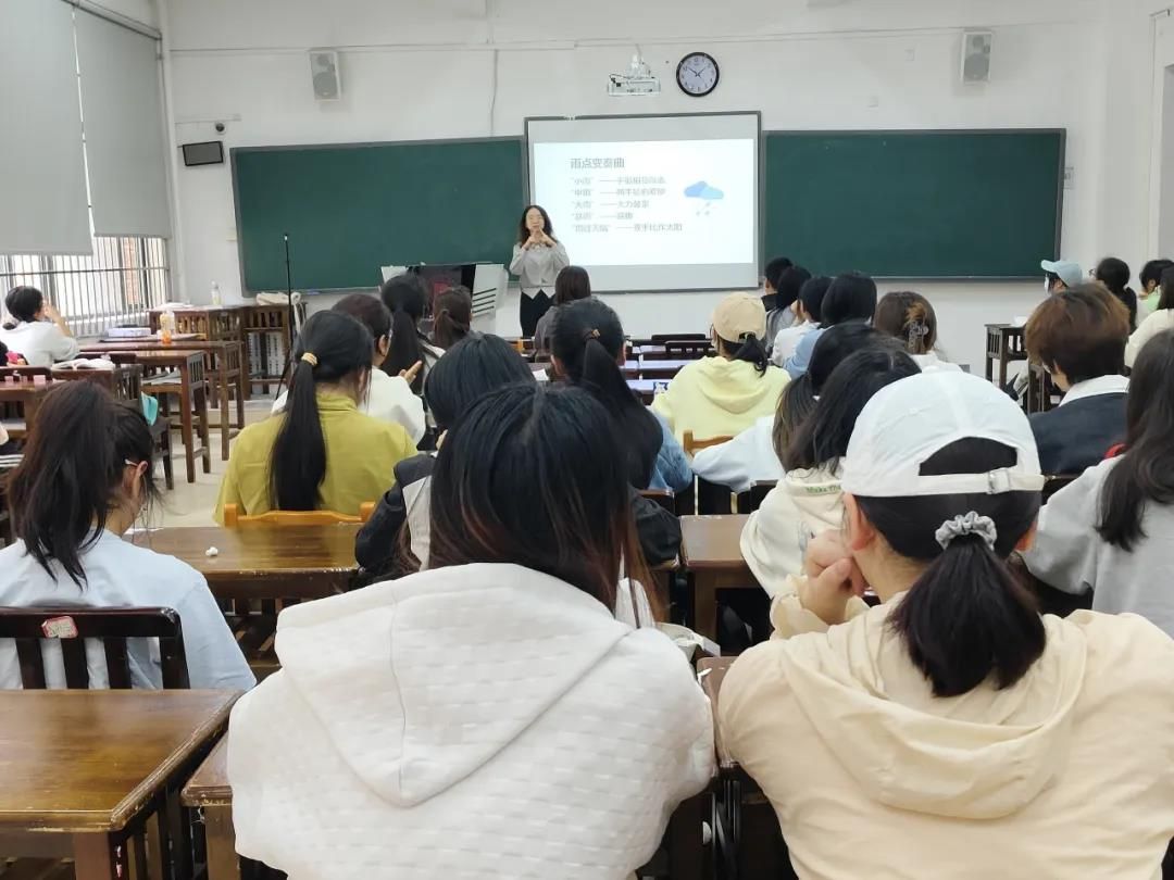 培训前,闫春艳以“雨点变奏曲”的心理反应小游戏与在座的同学们进行了互动,调动起同学们参与本次培训的积极性。