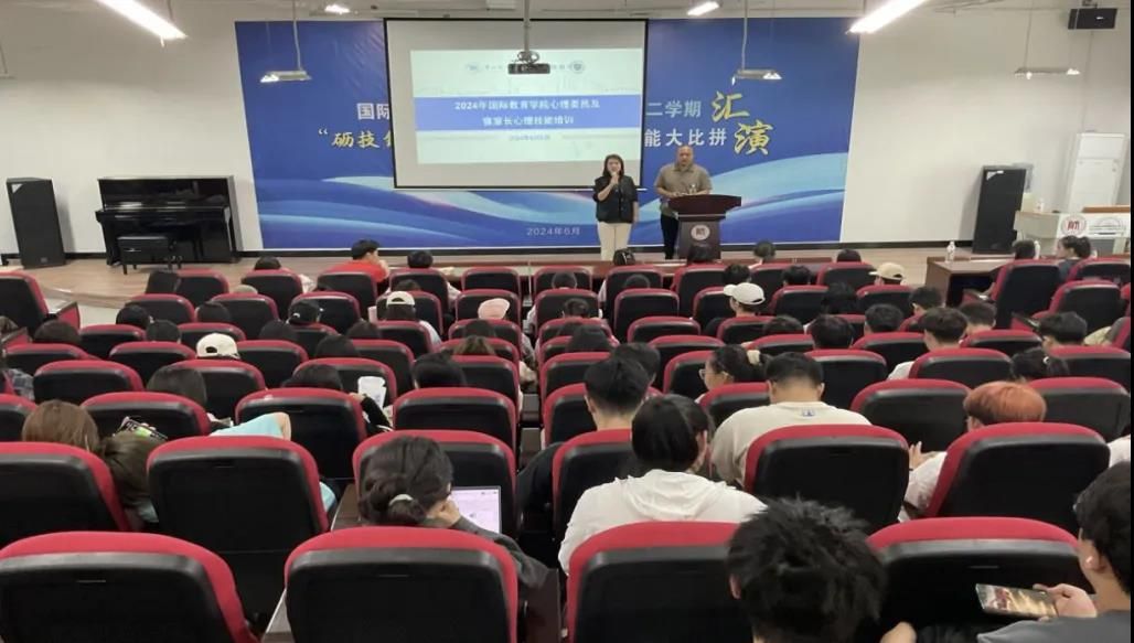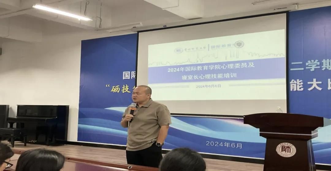 为进一步完善学院心理危机早期预警体系,发挥心理委员、寝室长在心理危机预警网络中的重要作用,提高大学生应对心理危机的能力。6月6日,国际教育院开展了心理委员及寝室长心理健康技能培训。本次培训由贵州师范大学心理咨询中心老师郑传章主讲,学生科科长陈荣霞、学院240余名寝室长及心理委员参加。