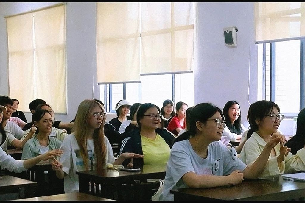 宋明燚老师以趣味心理游戏破冰,通过“大中小雨”“找‘ei’游戏”等互动巧妙融入寝室常见场景,引导同学们在轻松氛围中思考寝室人际关系问题,感悟沟通与理解的重要性。