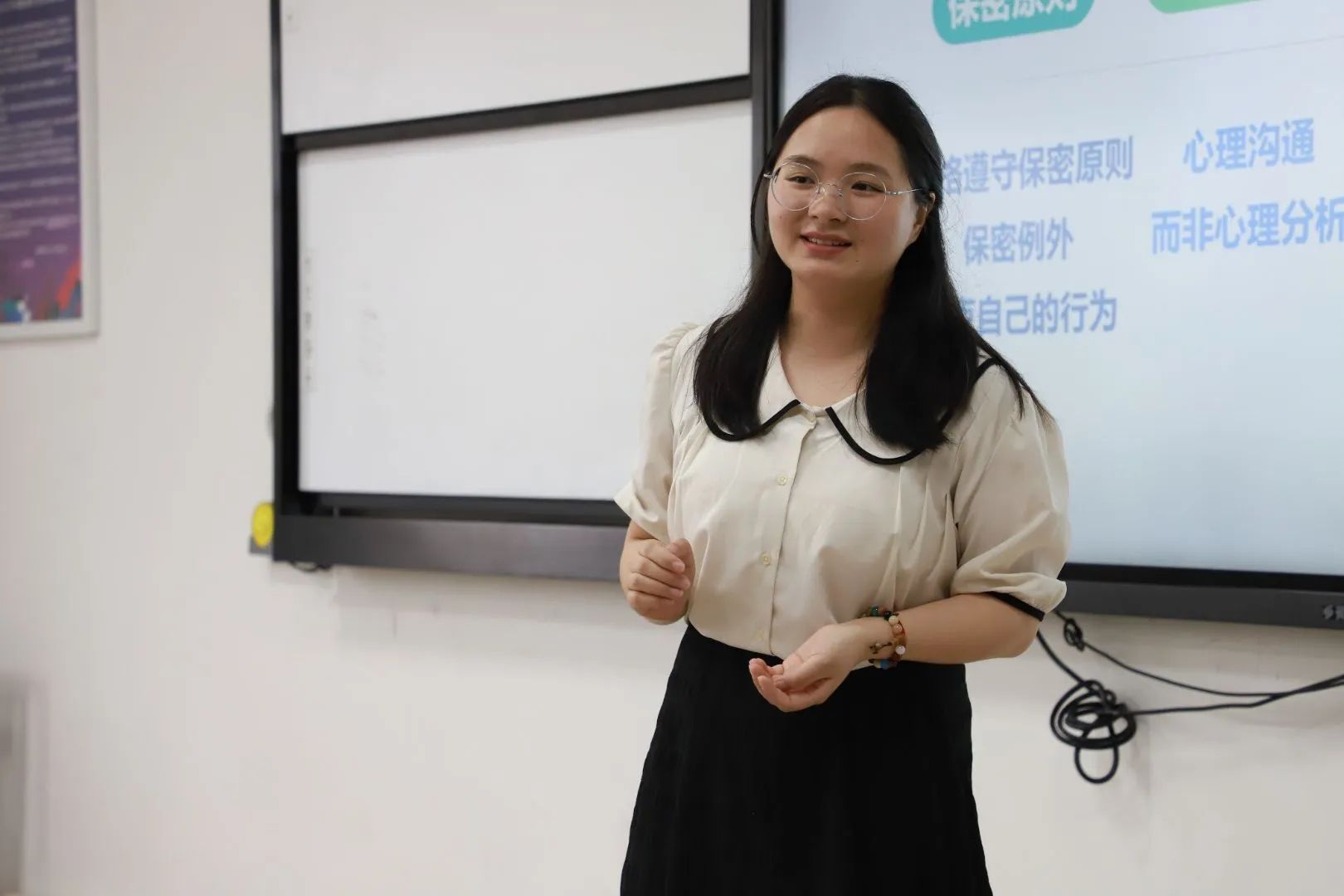 讲座伊始,谭太威以一场别开生面的“雨点变奏曲”小游戏迅速点燃了现场的气氛。在轻松愉悦的互动中,同学们的脸上洋溢着笑容,彼此之间的距离也拉近了许多。随后,她将话题转向同学们的日常生活,从寝室人际关系入手,深入探讨了在大学生活中如何与室友相处融洽,营造一个和谐、温暖的寝室环境。