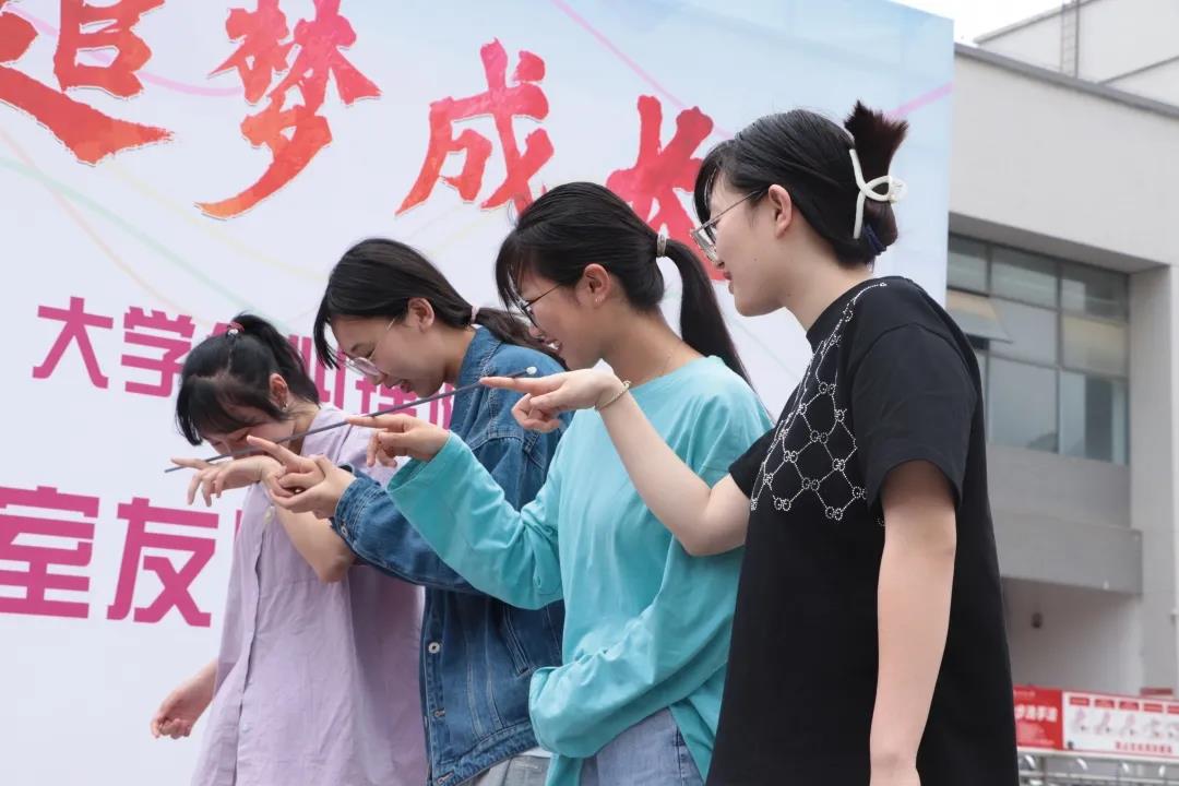 活动过程中,参与同学以寝室为单位通过挑战“不倒森林”、“你写我猜”、“摸石头过河”、“四人三足”、“袋鼠跳+指压板”、“齐眉杆”等六个趣味项目来考验室友成员间的团结协作与默契。随着活动的开展,越来越多同学参与到活动中,整个活动秉承“友谊第一,比赛第二”的原则,充满了欢声笑语。