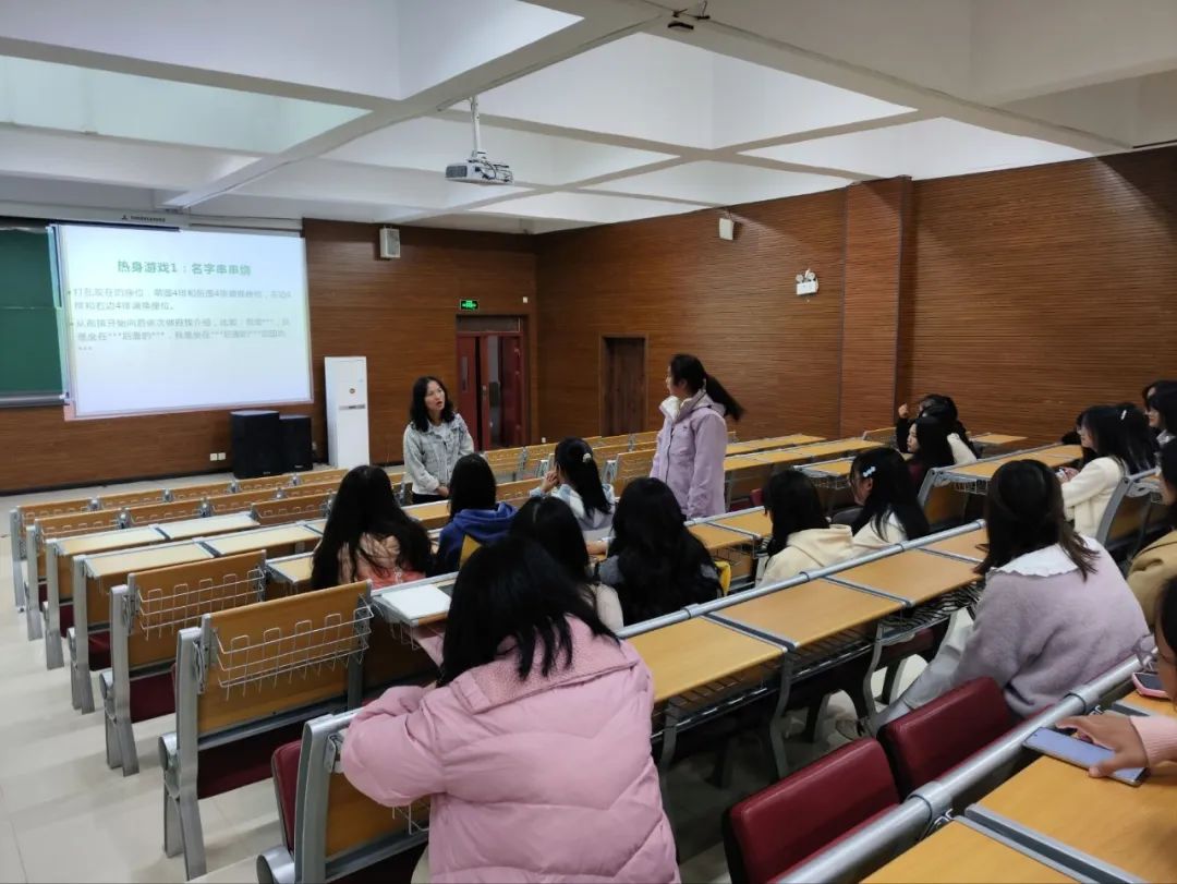 讲座开始,杨郦晶以“名字串串烧”,“注意力互动”两个热身游戏活跃了现场的气氛,引出了主题。她向学生们讲述心理健康是指个体在认知、情感、意志、行为等方面处于良好的状态,能够适应环境,实现自我价值,并列举出心理健康在学习、人际关等方面的积极影响。