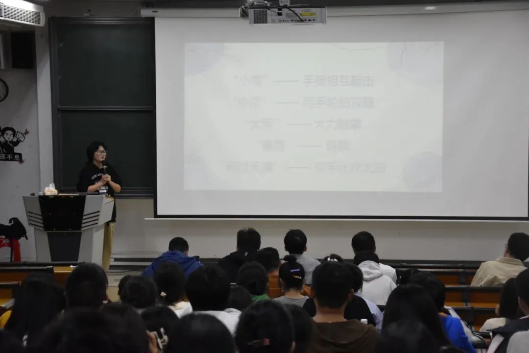 田颖组织热身小游戏与在场同学热情互动,调动学生参与积极性,并详细介绍了何为心理辅导以及如何解决情绪问题等,同时从人际交往、学业知识、自我感受等方面指出大家在大学生活中所遇到的问题,并提出相关建议。