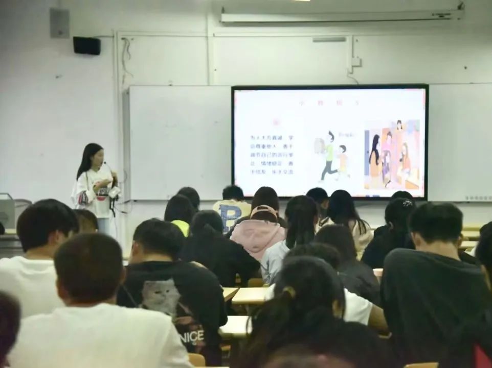 涓滴成流,润心以柔。为传播心理健康的相关知识,帮助同学们更好地认识自我,更快适应校园生活,国际教育学院邀请我校心理咨询中心于10月19日至20日在我校西校区举办了多场关于“2023级新生心理健康教育”主题讲座,由心理咨询中心老师郑传章,咨询员陈雨、刘婷、陈江敏、严丽担任主讲人,学院2023级全体同学参加。