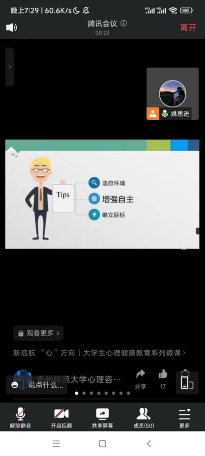 会议后,同学们纷纷表示,通过心理微课主题学习,对心理调适的技能、维护心理健康和提高心理素质的方法有了一定的了解。通过对典型案例的分析学习,对认识与识别心理异常现象有了认识,并有了一定的解决思路。