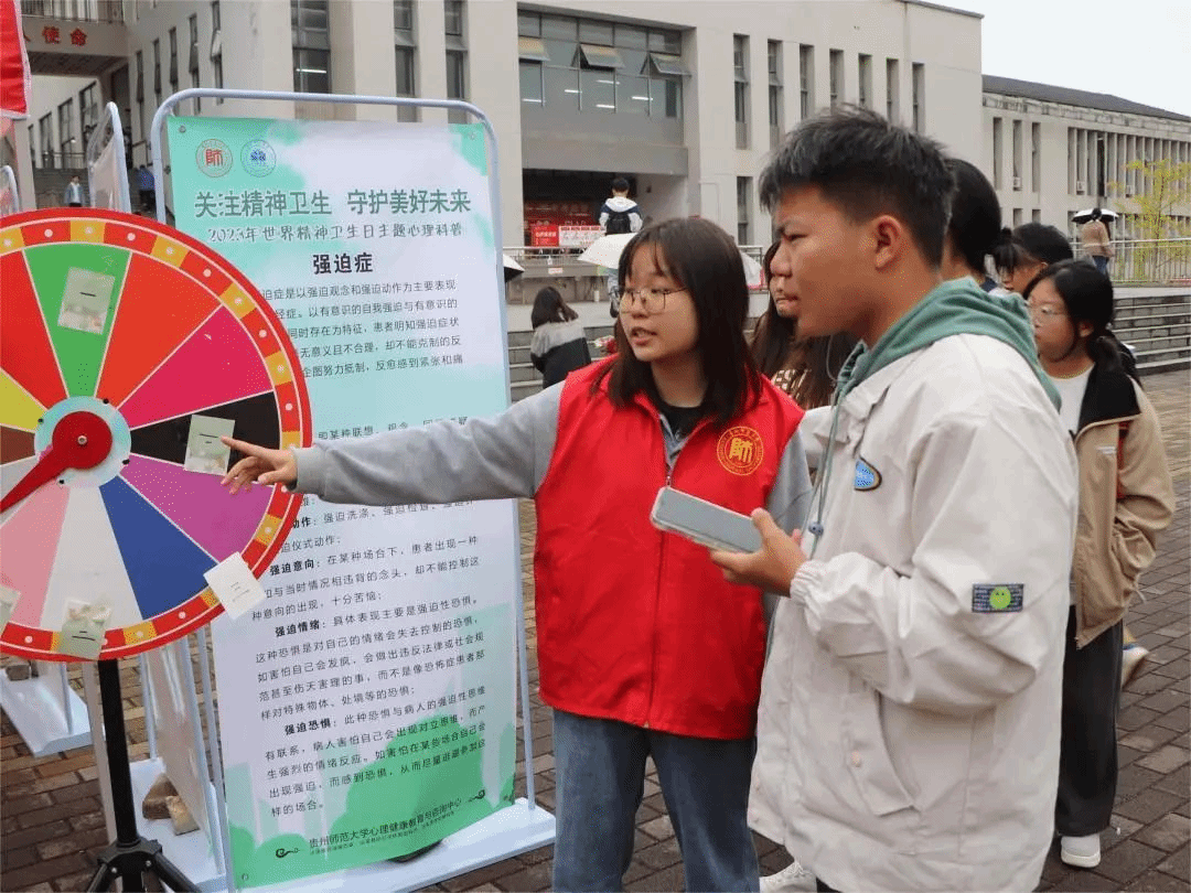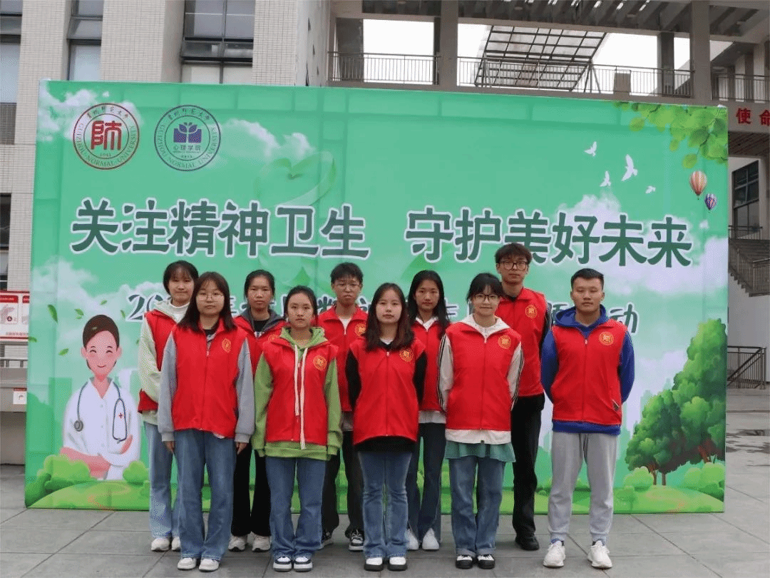 为丰富校园文化生活,让大家了解到更多的精神卫生以及心理健康知识。2023年10月10日,由心理健康教育与咨询中心主办,学生心理健康协会协办的“关注精神卫生 守护美好未来”世界精神卫生日主题活动在一食堂门口举办。