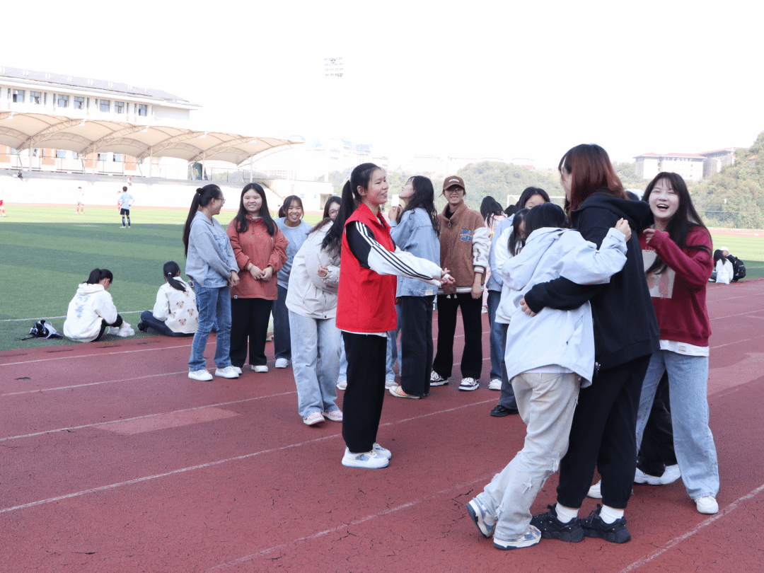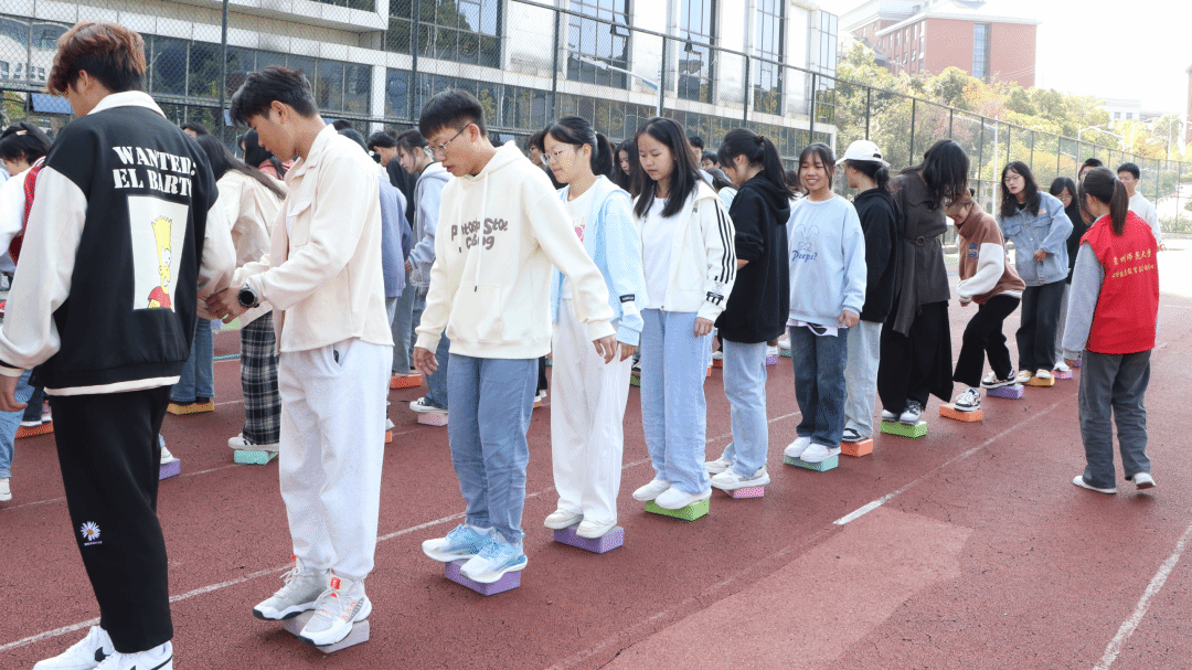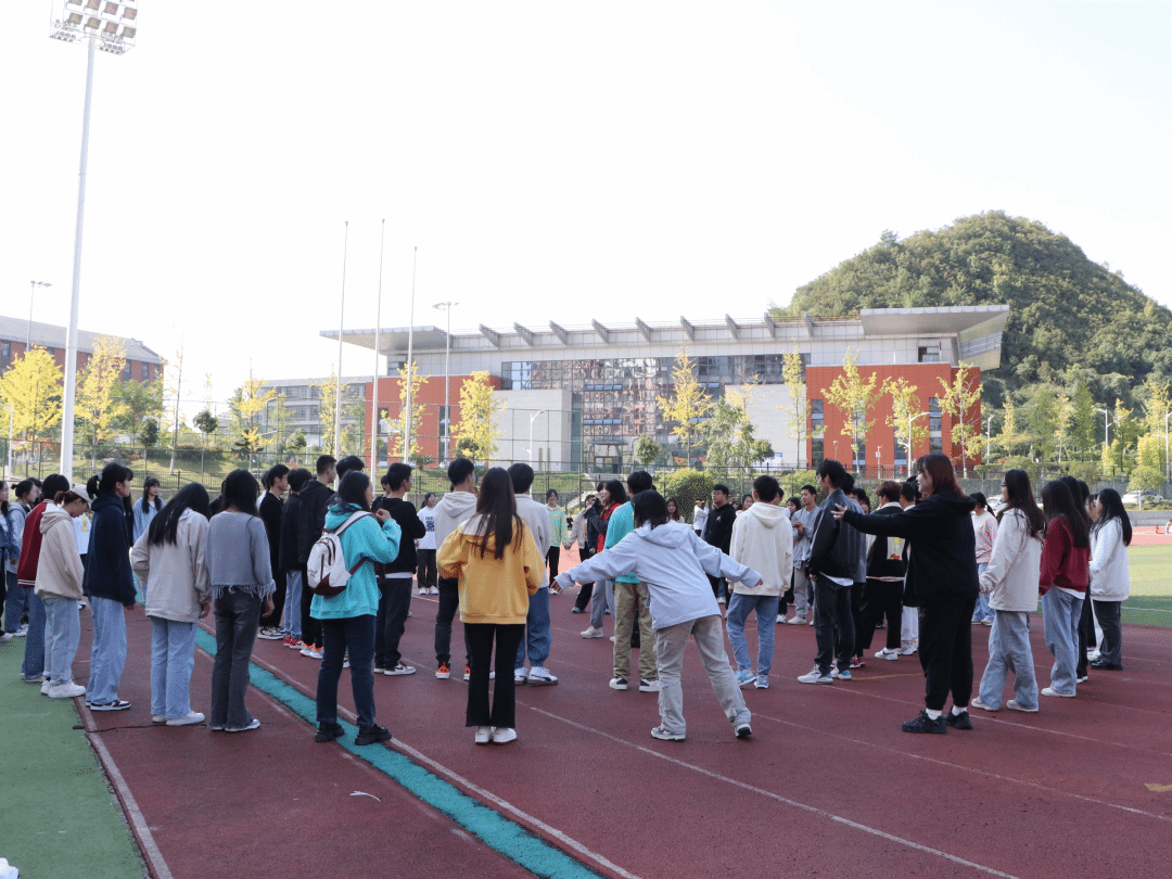 接下来,向婷组织同学们进行“珠行万里”,“摸石过河”,“头顶开花”,“激情节拍”等活动,让气氛持续升温。在“珠行万里”活动中,各小组通过商量好的策略进行游戏,既锻炼了自身的表现力,也培养了同学间的默契;在“摸石过河”活动中,各小组排兵布阵和其他组展开激烈竞争;在“头顶开花”活动,各组默契配合,气氛尤为热烈;最后,向婷让同学们在“激情节拍”活动中喊出我们是最棒的团队,释放了内心的压力,团队意识和凝聚力也空前高涨。
