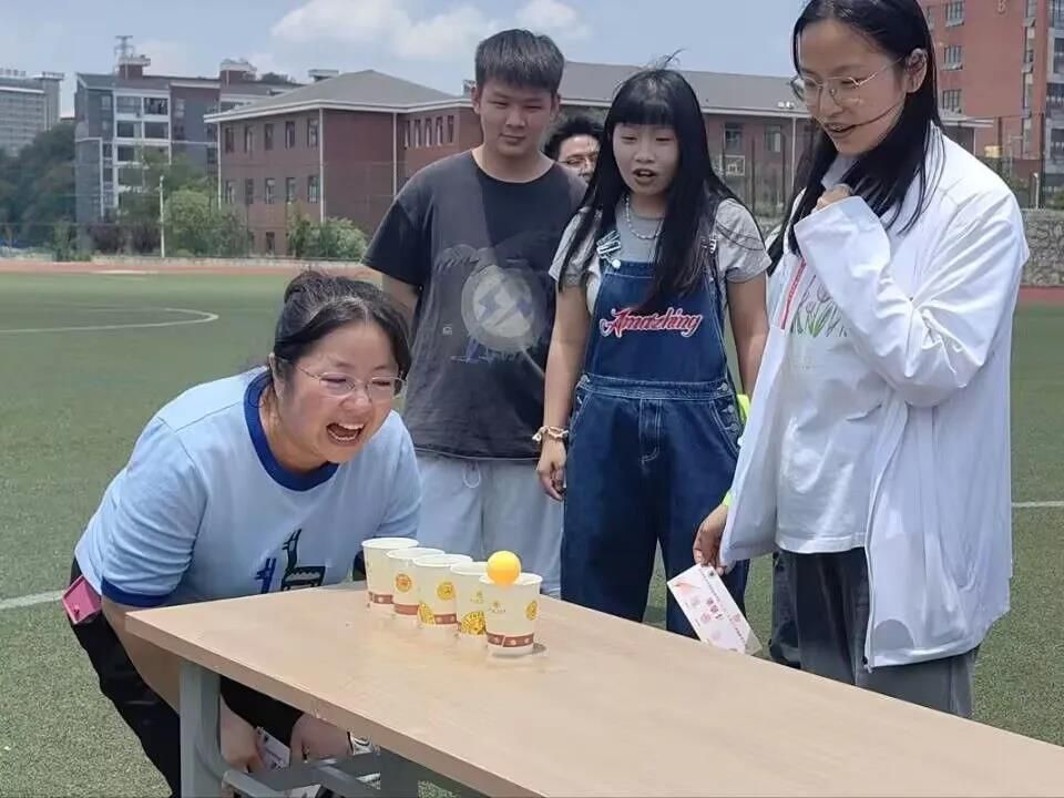 紧接着,院舞蹈队进行了舞蹈表演。主持人对本次活动进行了详细介绍,活动共分为“团结一心”、“击中烦恼”和“吹走烦恼”三个部分,每个游戏旨在通过团队协作和个人挑战,让同学们在轻松愉快的氛围中释放压力,增进彼此间的情谊。