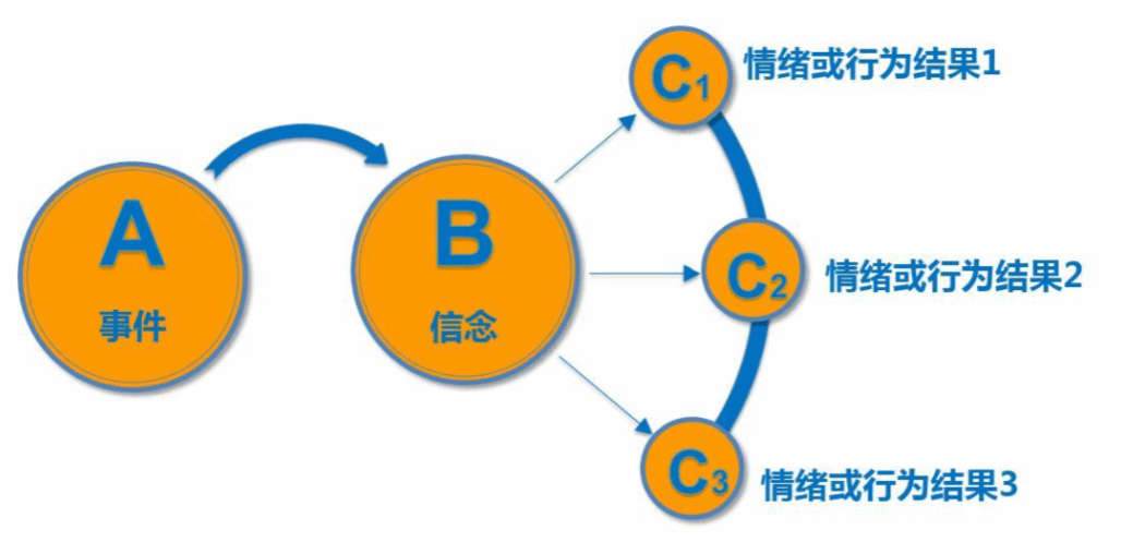 该理论认为事件A只是引发情绪和行为后果C的间接原因,而引发C的直接原因则是个体对诱发事件A的认知和评价而产生的信念B。