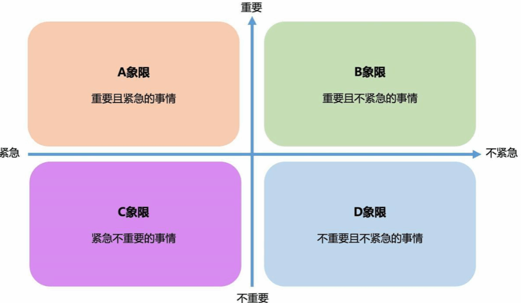 四象限法则按照紧急性和重要性将事件划为四大象限,分别是: