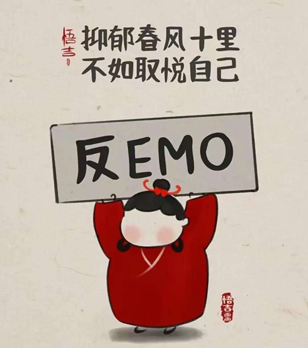 emo是英文情绪型(emotional)的缩写,在网络语言中,emo是一种简洁而富有表现力的表达方式,通常用于表达自己或他人处于情绪低落、沮丧或悲伤时的状态(Gross et al., 2003; 李玲, 2023; 毛稚霞, 2024)。深夜emo,通常是指在深夜时分,人们因为各种情绪而忧郁、感伤。